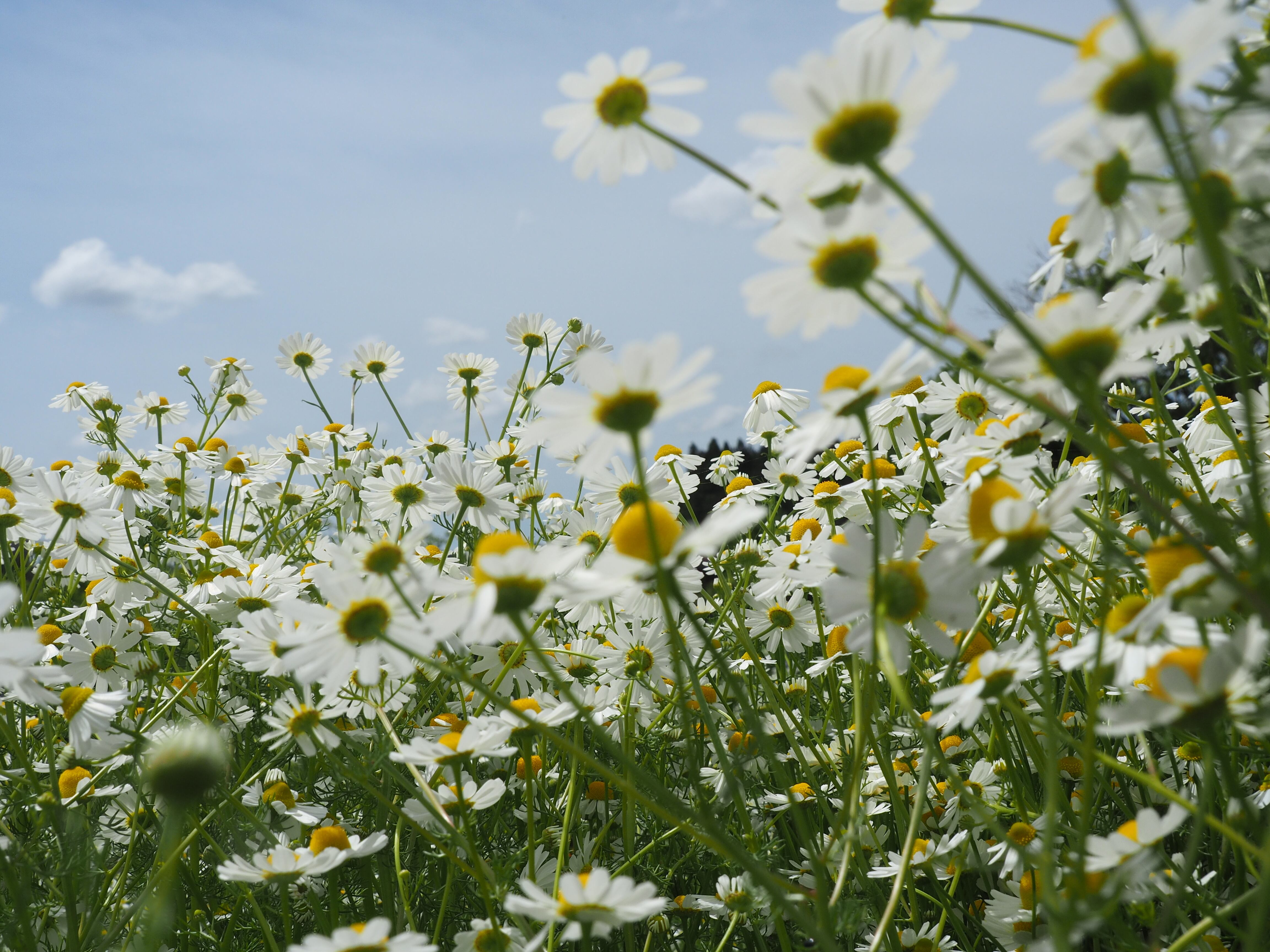 コーンフラワー、ジャーマンカモミール、カレンデュラ