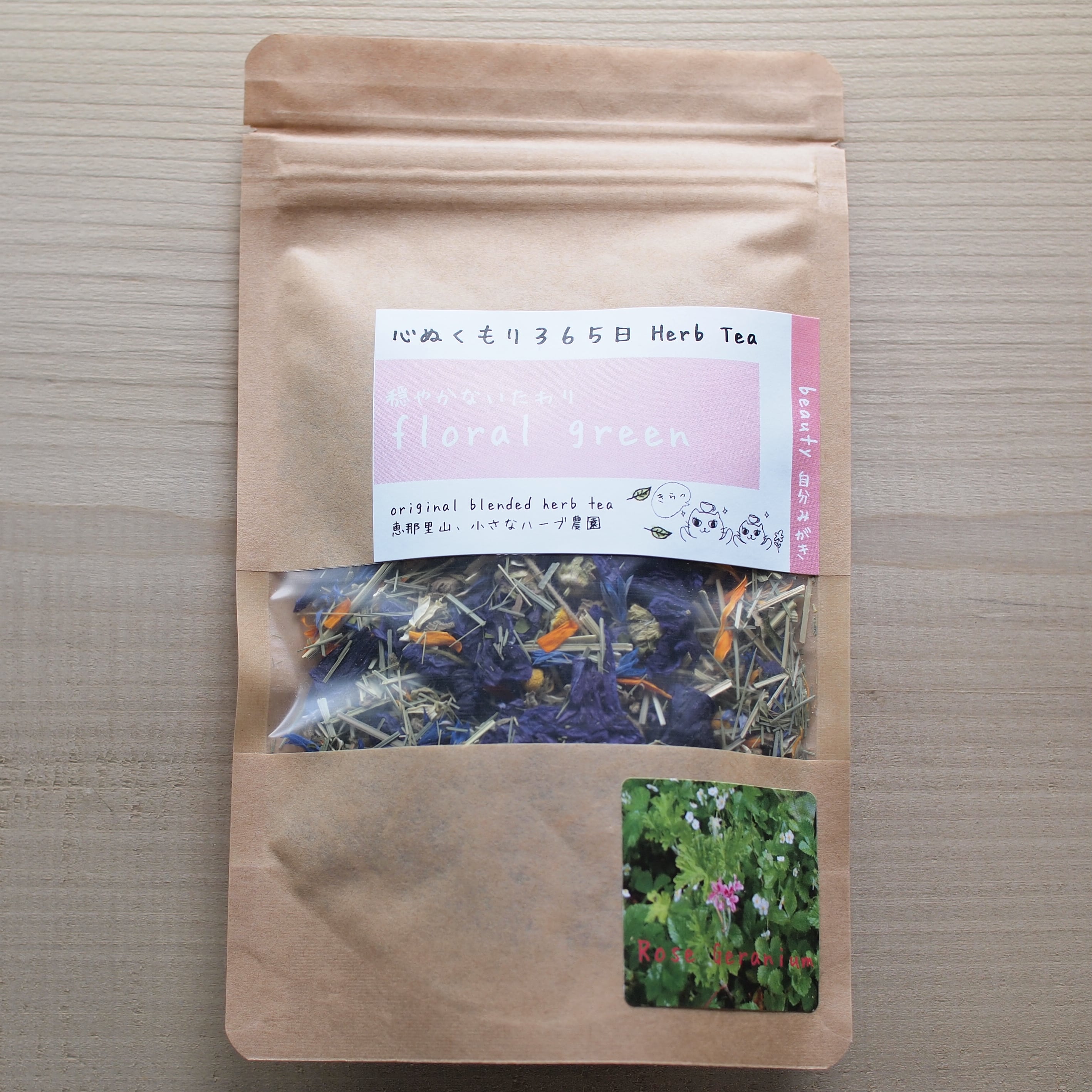 無農薬栽培で育てたハーブを使用した、女性の健康をサポートするオリジナルブレンドです。自家栽培ハーブを100%使用しているため、安心してご堪能いただけます。