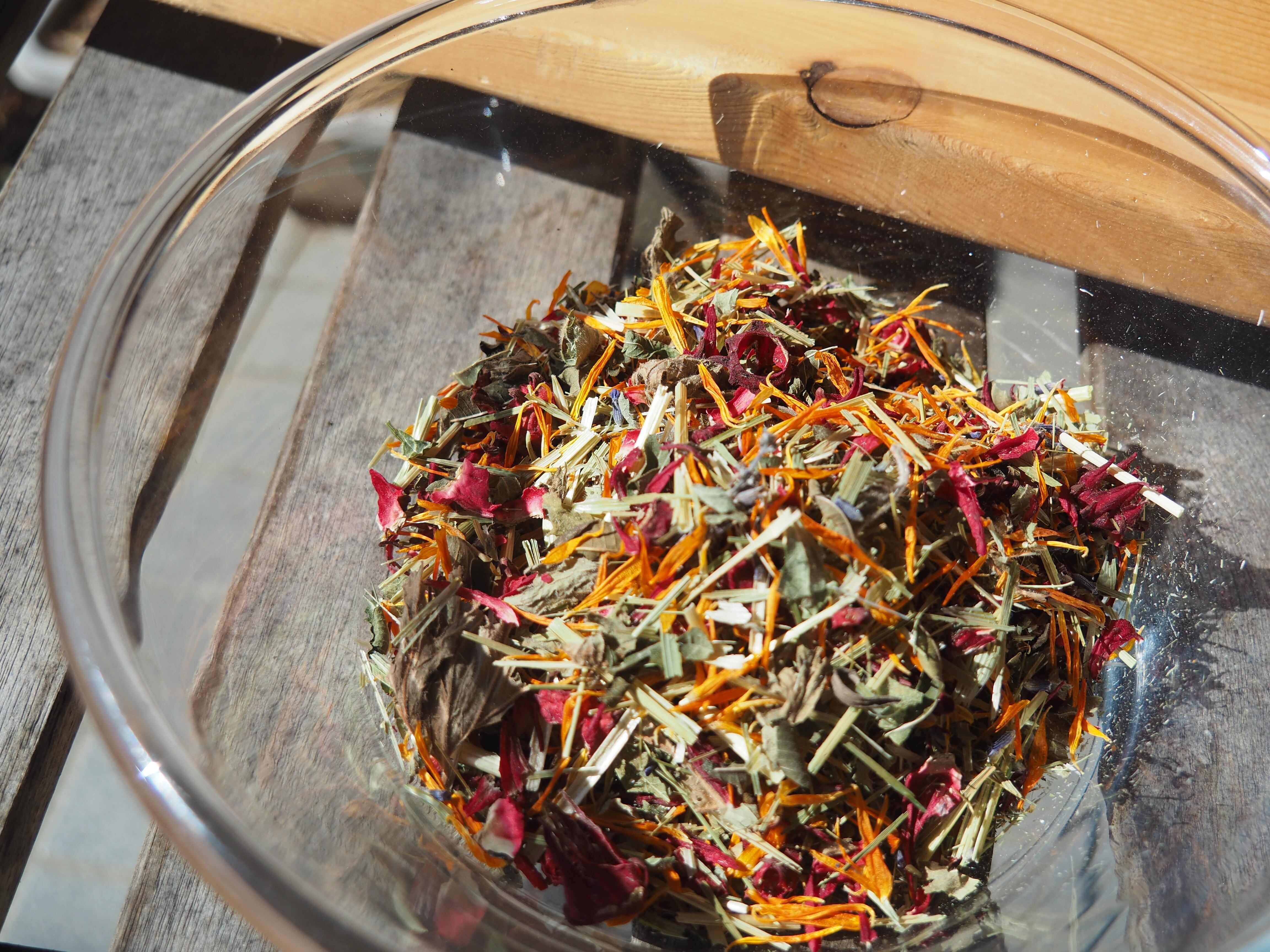 ローゼル、オート麦、カレンデュラ、レモンバーベナ、ローズゼラニウム、レディスマントルラベンダー